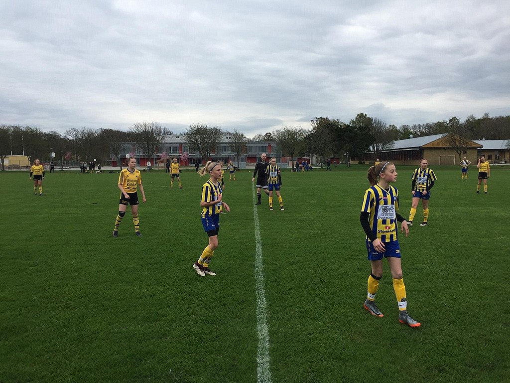 Tisdagen 1 maj var det dags för årets första seriematch. Efter en del turer hit och dit blev det till slut spel i Flickor div 7 Halland (11 mot 11).